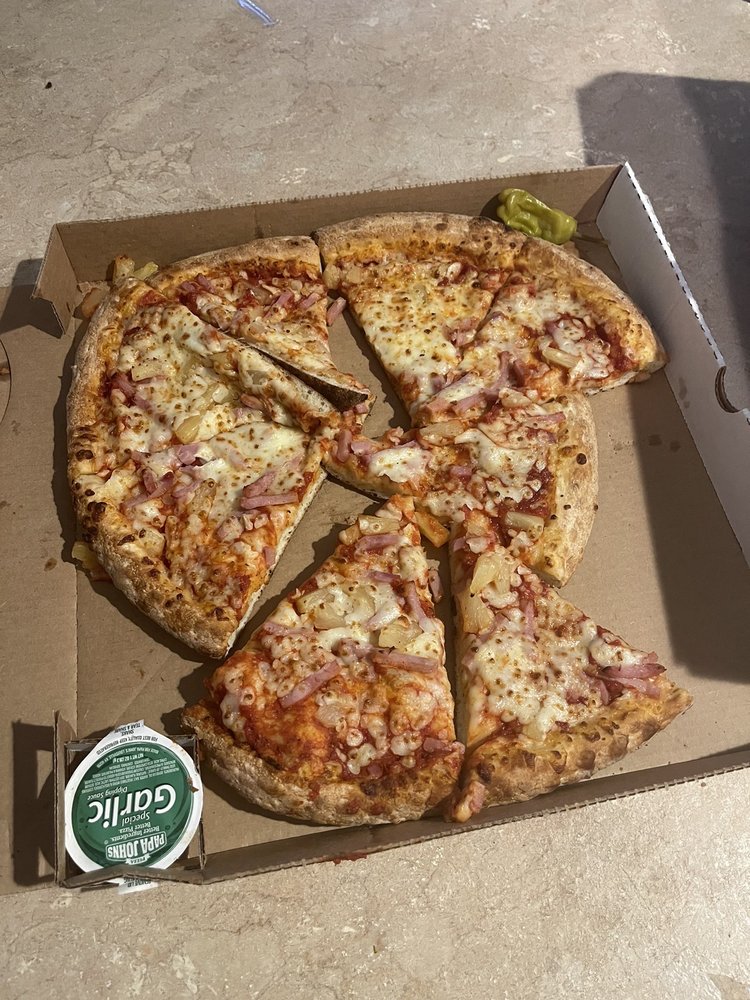 Get a taste of the tropics. This super delicious pizza is loaded with sweet, juicy pineapple tidbits, julienne-cut Canadian bacon, hickory-smoked bacon, a three-cheese blend, and real cheese made from mozzarella on our signature sauce and original fresh dough.